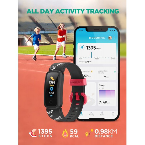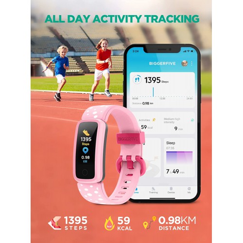BIGGERFIVE Vigor Kids Fitness Tracker Watch for Boys Girls,Activity Tracker with Heart Rate Sleep Monitor,Pedometer Watch,IP68 Waterproof Calorie Step Counter Watch with Alarm Clock,Best Kids Gift